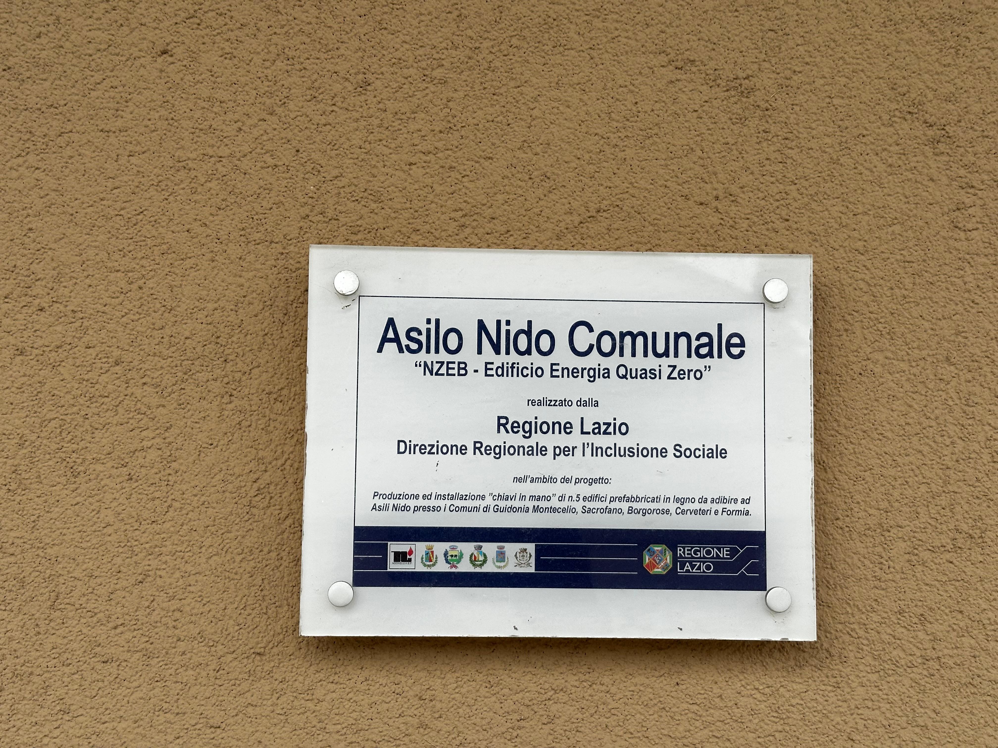 Esterno dell'edificio Asilo Nido Comunale di Colleverde - Parco Giochi Asilo Nido Comunale di Colleverde - Targa Ingresso